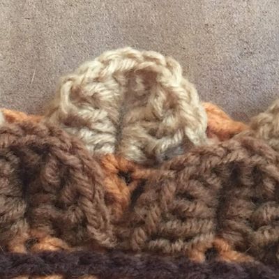 Rounds 31 and 33 are worked very similar to the crocodile stitch. All dc are worked either up or down the posts of the 2 dc pairs from the previous rounds. You may find it helpful to turn your work sideways to the left or right for each set of 6dc.